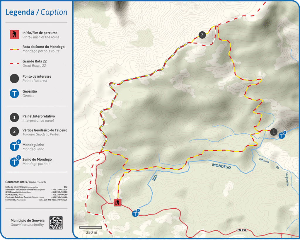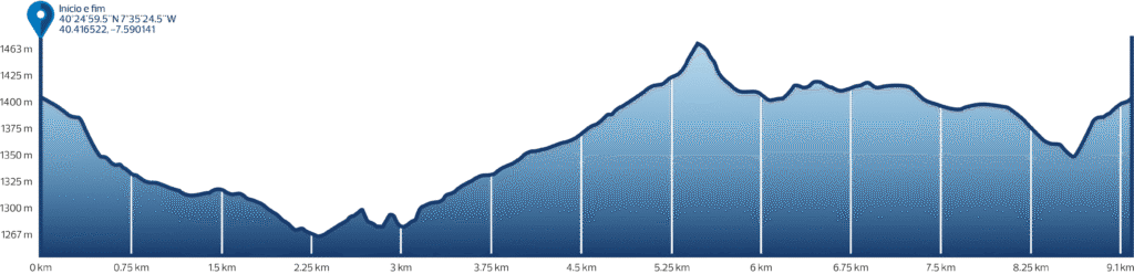 The Short Route (PR) of the Sumo do Mondego is a trail of approximately 10 km that runs through an area dominated by granite morphology, featuring numerous examples of granite block chaos formed by various geomorphological processes. These striking formations emerge from the shrub vegetation, where brooms (Cytisus spp.) are the dominant species. Along the route, visitors can stop at the source of the Mondego River (known as the Mondeguinho), the symbolic birthplace of the longest river entirely within Portuguese territory. From here, the river begins its 258 km journey toward Figueira da Foz. A few kilometers downstream lies the Sumo do Mondego – a peculiar site where, due to fluvial erosion and the collapse of large granite blocks, the Mondego flows underground, seemingly “vanishing” (“sumir”) from the surface. To witness this natural curiosity, a short detour is required, after which the trail resumes; the location is marked nwith an interpretive panel. In addition to this geological phenomenon, the trail offers expansive views from the Taloeiro summit, including a striking panorama of the enigmatic Coruto de Alfátima. The diverse landscapes throughout the route invite prolonged contemplation – from the granite plateaus of the Mondego, where the Casais de Folgosinho originated along its banks, to the superb views over Beira Alta. Throughout the hike, a significant variety of birdlife can also be observed. Depending on the season, visitors may enjoy remarkable encounters with both migratory and resident bird species. This walking trail intersects the Grande Rota das Aldeias Históricas – GR 22, specifically the section connecting the Historical Villages of Linhares da Beira and Piódão, making it a wonderful way to discover an iconic corner of the Serra da Estrela.