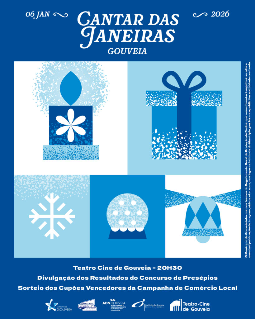 O Tradicional Cantar das Janeiras regressa ao Teatro Cine de Gouveia na data em que se celebra o Dia de Reis, 6 de janeiro, pelas 20h30. Neste espetáculo, as associações sobem ao palco e cantam as Janeiras ao Senhor Presidente da Câmara, bem como a todos os presentes.