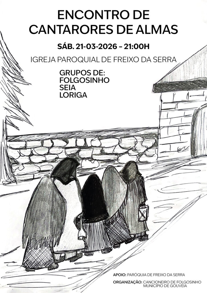 No próximo sábado, dia 21 de março, pelas 21h00, realiza-se na Igreja Paroquial de Freixo da Serra um Encontro de Cantadores de Almas, uma iniciativa que pretende preservar e valorizar esta tradição do património cultural imaterial da região.