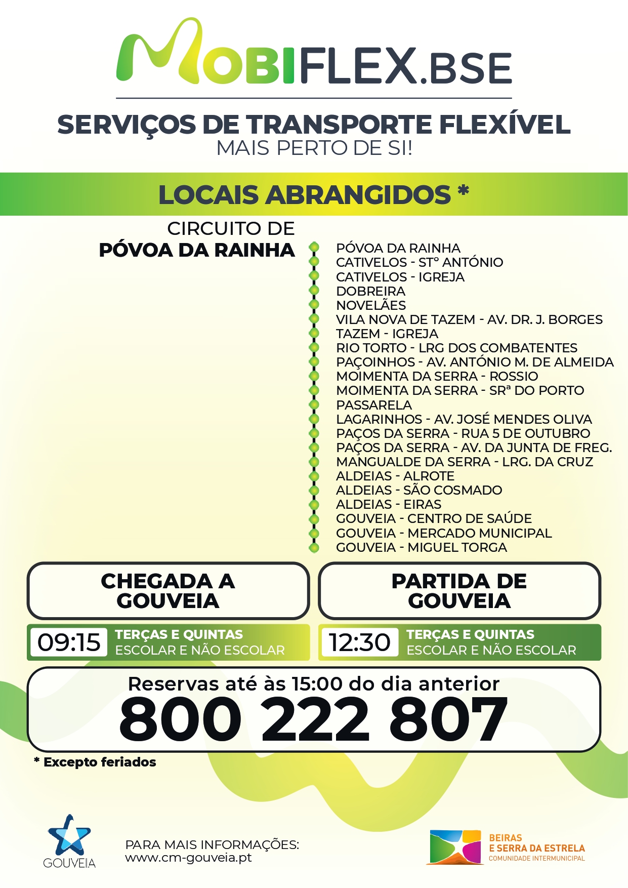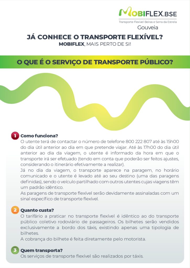 O Município de Gouveia disponibiliza o serviço de transporte a pedido “Mobiflex.BSE”.
