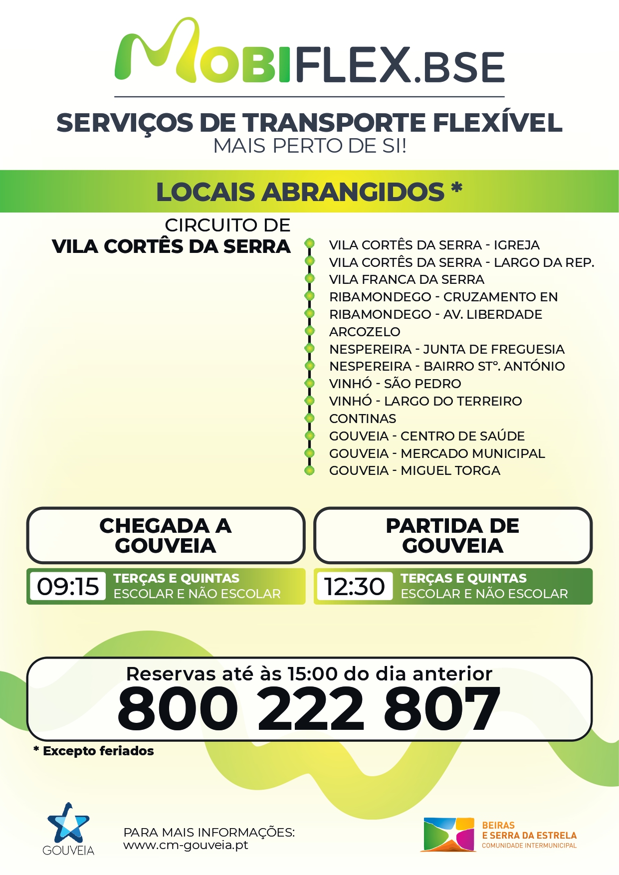 Um projeto desenvolvido pelo Município em articulação com a Comunidade Intermunicipal das Beiras e Serra da Estrela (CIMBSE), que tem como principal objetivo colmatar a reduzida oferta regular de transportes públicos nas várias freguesias do concelho e melhorar a mobilidade e a acessibilidade das pessoas, nomeadamente as mais idosas, indo de encontro às suas necessidades.